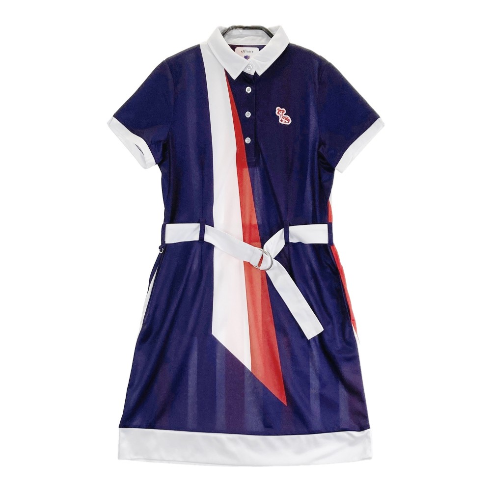 EFFICACE エフィカス 半袖ポロ ワンピース 総柄 ネイビー系 2 ゴルフウェア レディース