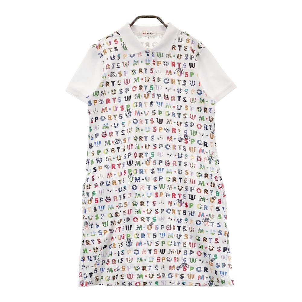 M.U SPORTS エムユースポーツ 半袖ポロワンピース ロゴ総柄 ホワイト系 42 ゴルフウェア レディース