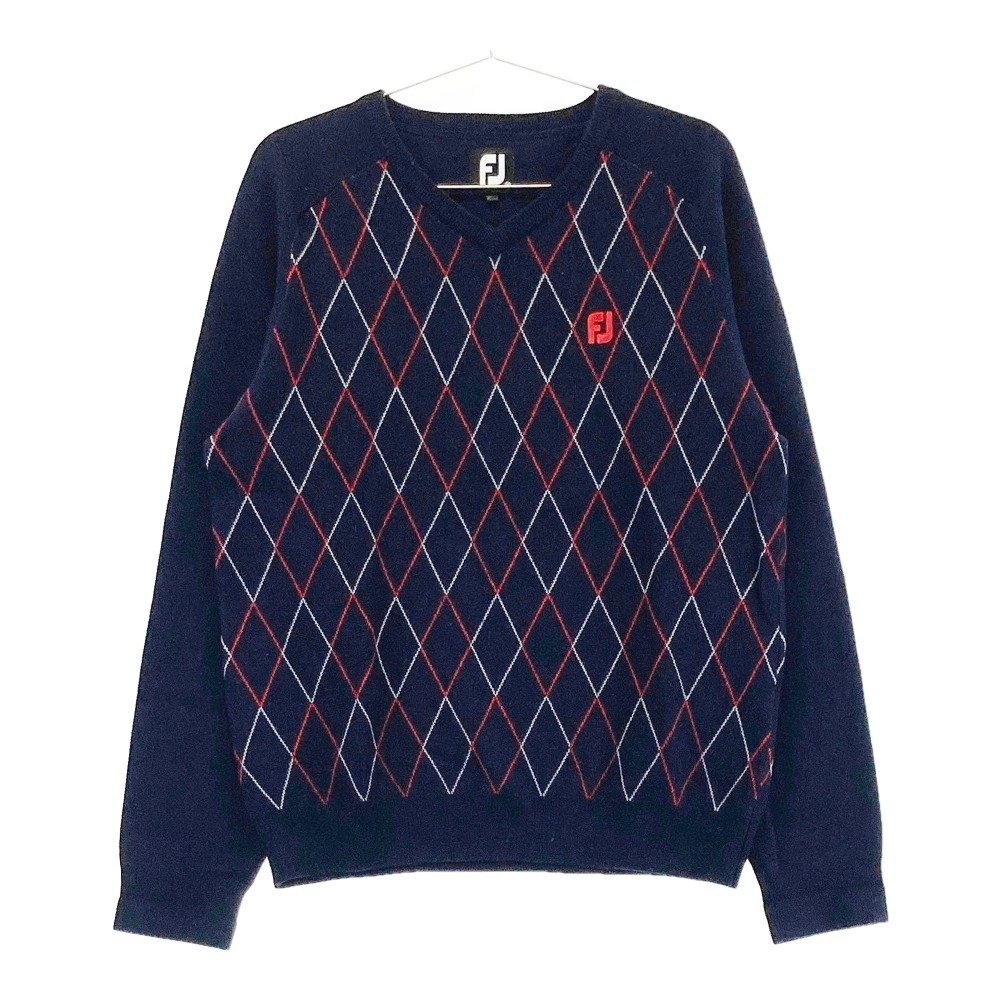 FOOT JOY フットジョイ Vネック ウール混 ニットセーター ダイヤ柄 ネイビー系 M ゴルフウェア メンズ