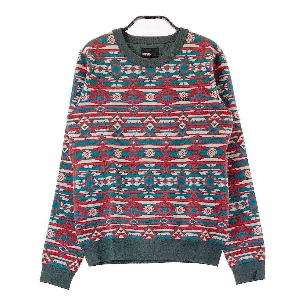 PING ピン 長袖 ニットセーター 総柄 カーキ系 S ゴルフウェア レディース