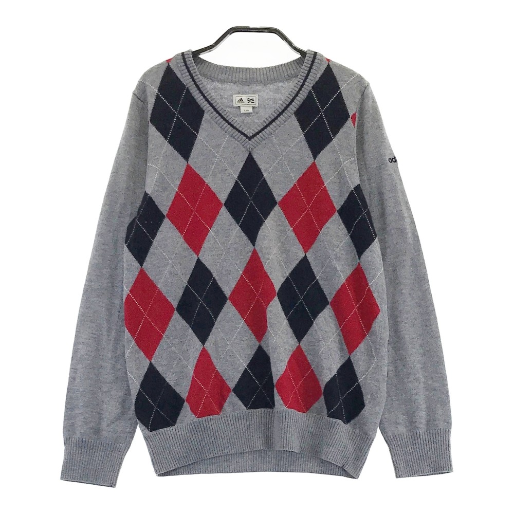 ADIDAS GOLF アディダスゴルフ ニットセーター アーガイル柄 グレー系 L ゴルフウェア レディース