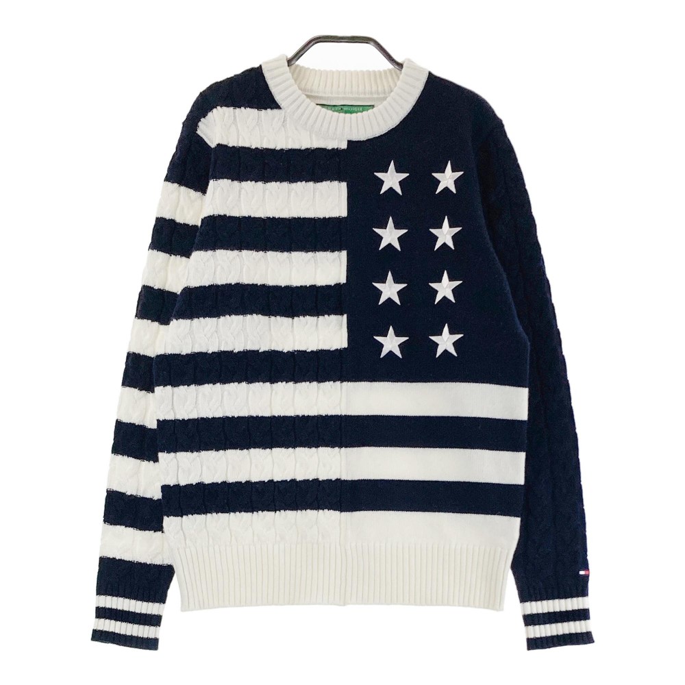 TOMMY HILFIGER GOLF トミー ヒルフィガーゴルフ ニットセーター ウール混 星条旗柄 ネイビー系 S ゴルフウェア レディース
