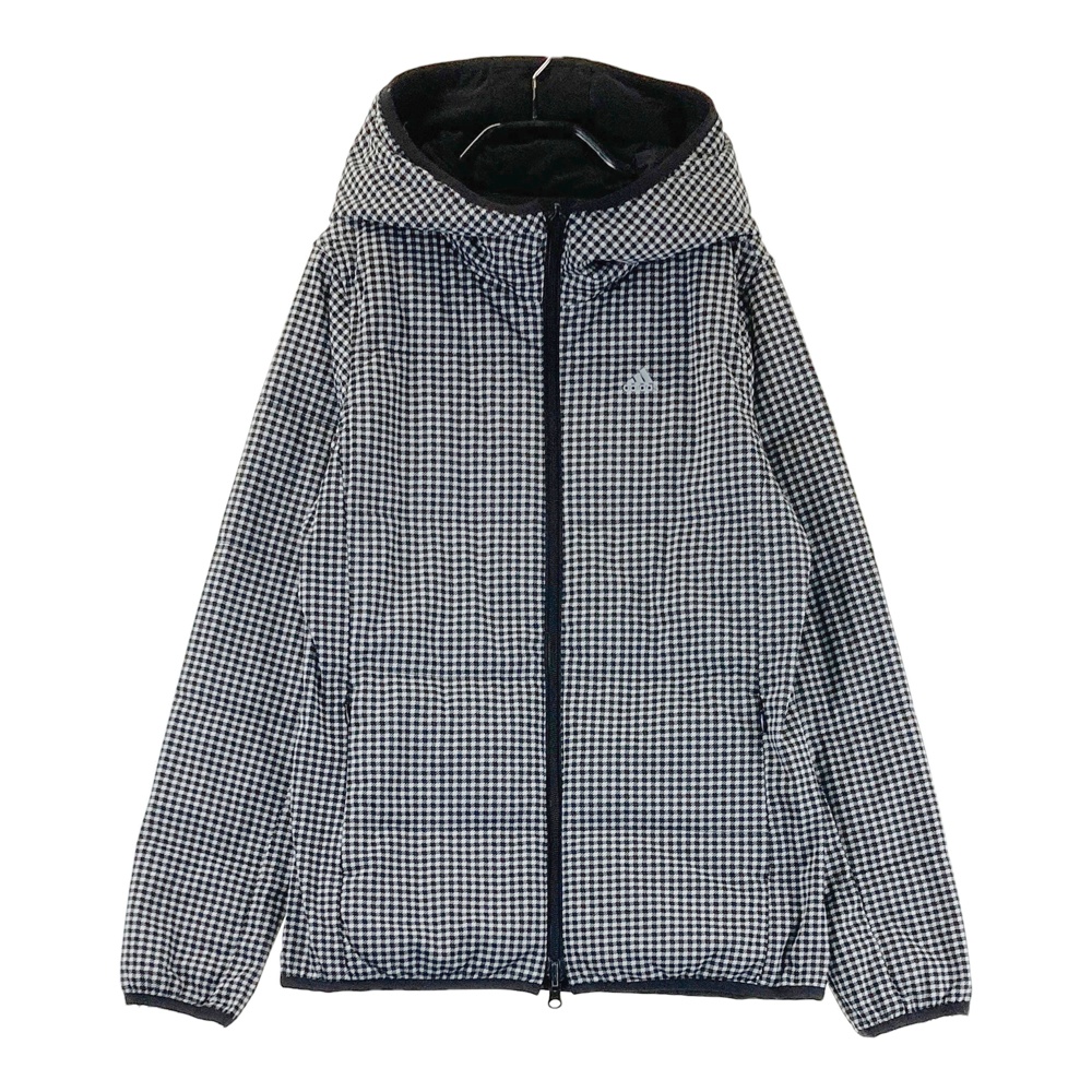 ADIDAS GOLF アディダスゴルフ リバーシブル フード付ダウンジャケット 総柄 ブラック系 S ゴルフウェア レディース