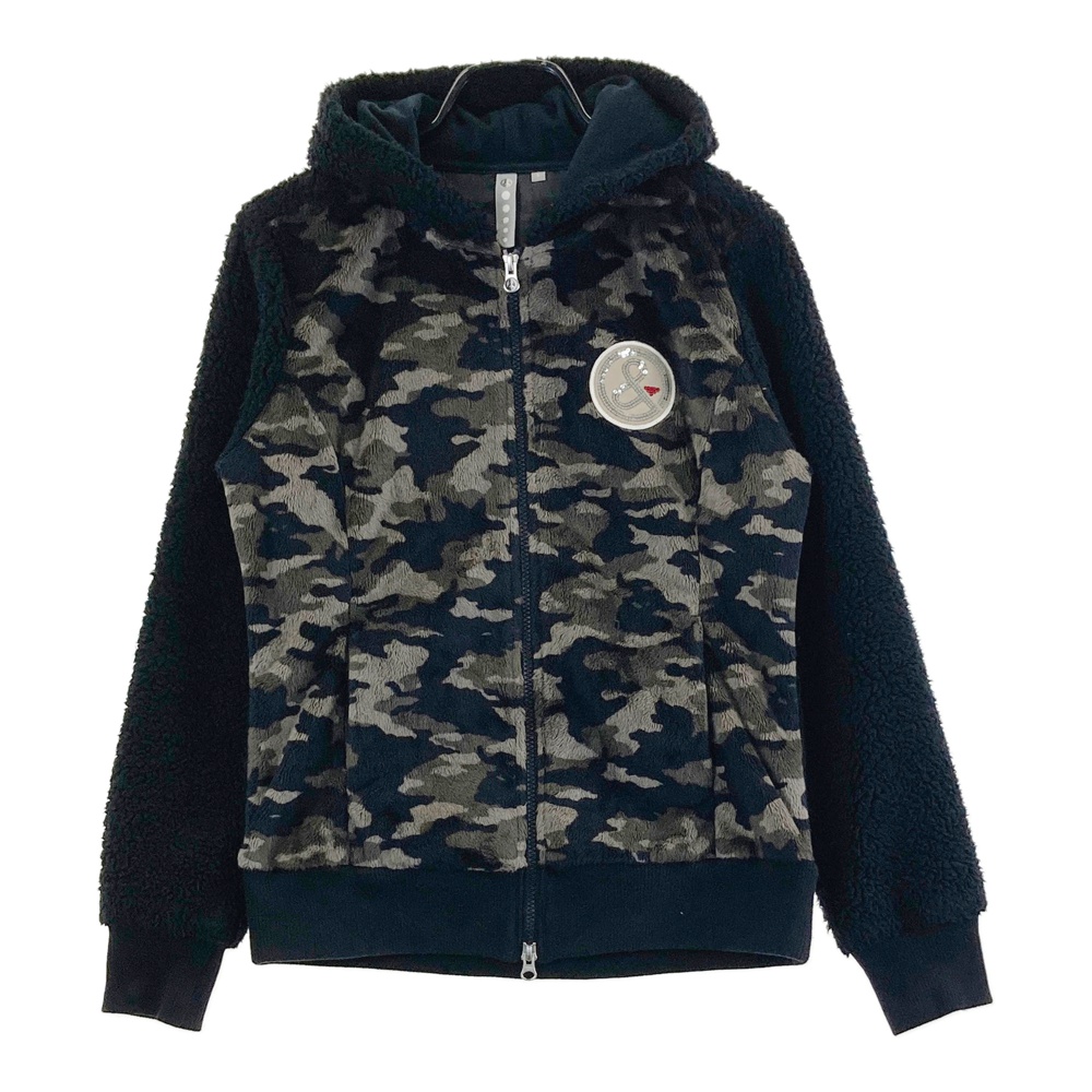 AND PER SE アンパスィ ボア ジップ ジャケット 総柄 ブラック系 L ゴルフウェア レディース