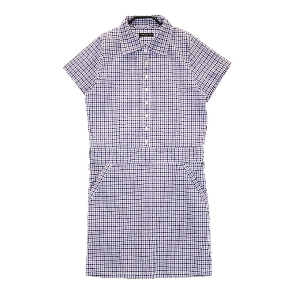 EDWIN GOLF エドウィンゴルフ 半袖ワンピース シアサッカー チェック柄 パープル系 M ゴルフウェア レディース