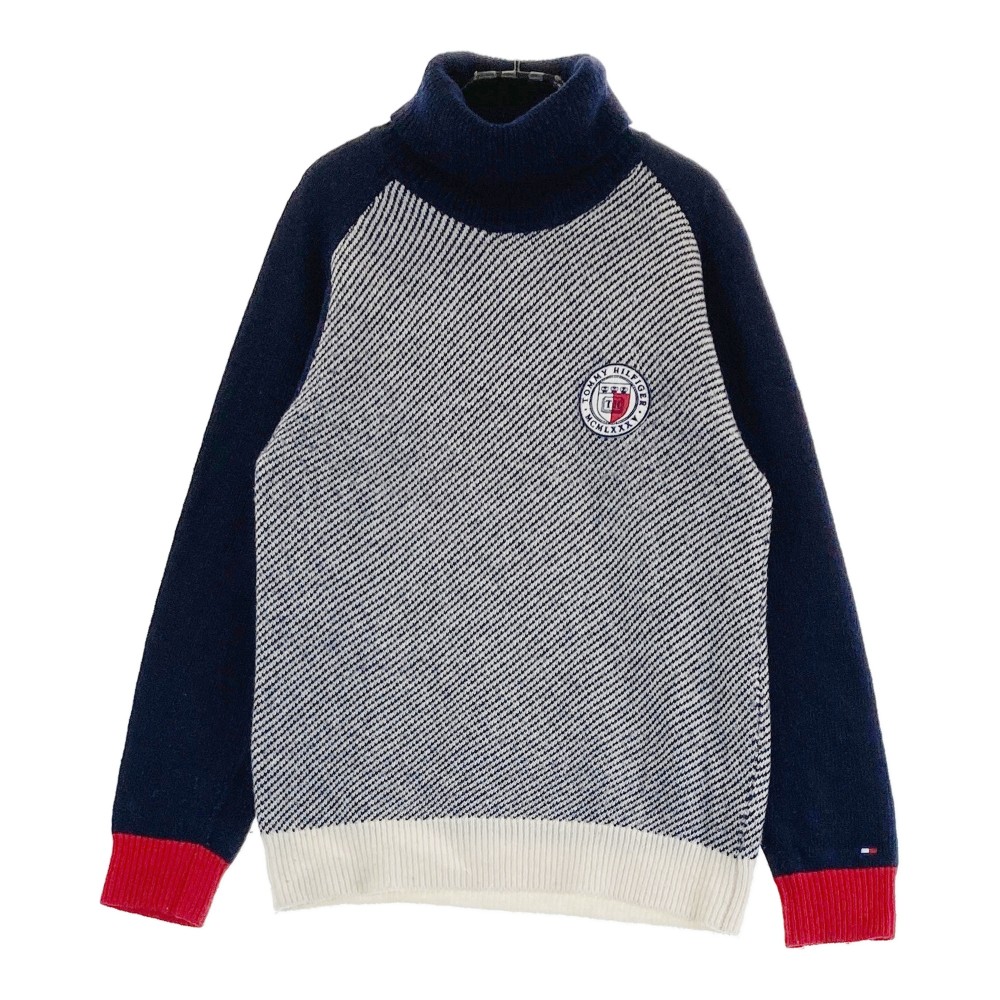 TOMMY HILFIGER GOLF トミー ヒルフィガーゴルフ ウール混 タートルネック ニット セーター 総柄 ネイビー系 M ゴルフウェア レディース