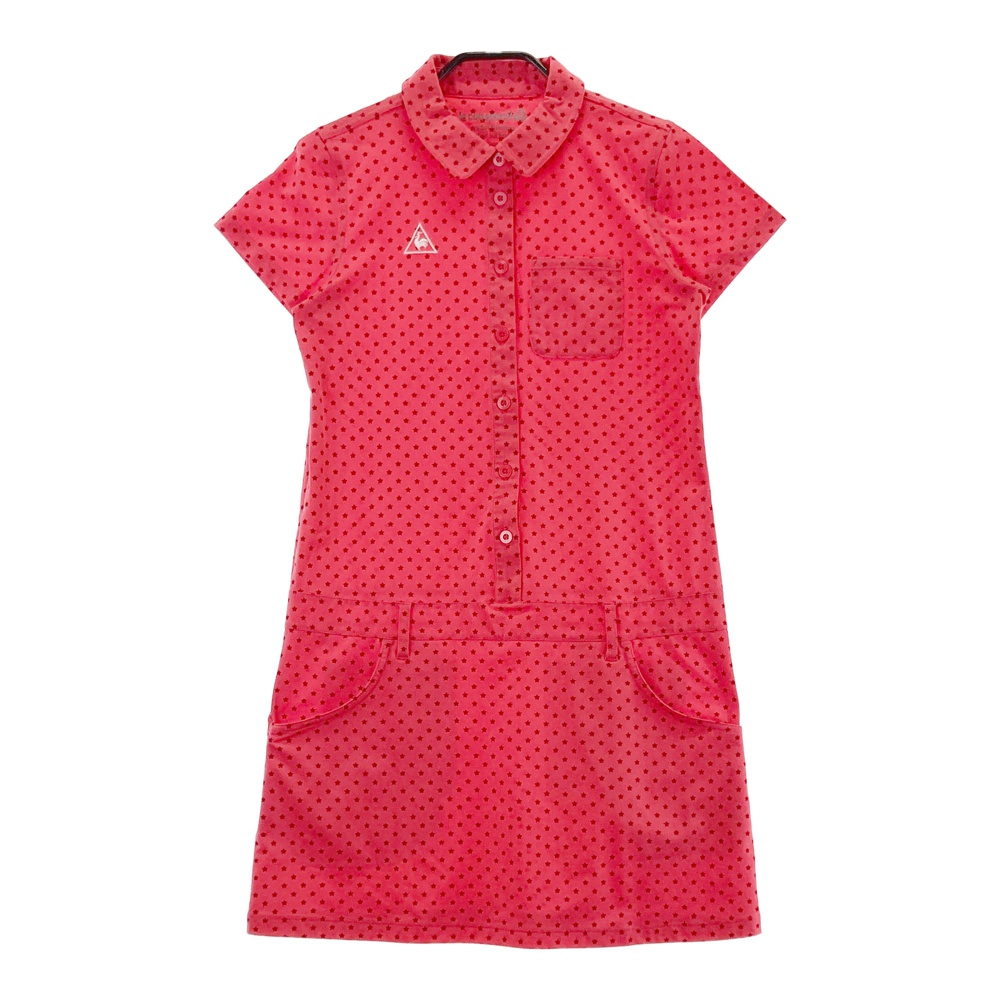 LE COQ GOLF ルコックゴルフ 半袖ワンピース 星 総柄 レッド系 M ゴルフウェア レディース