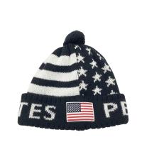 PEARLY GATES パーリーゲイツ ニット帽 ボンボン付 星条旗柄 ネイビー系 FR ゴルフウェア