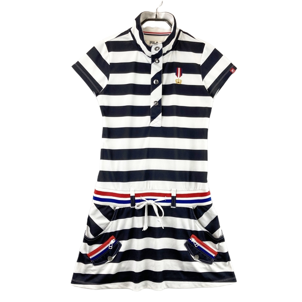 FILA GOLF フィラゴルフ 半袖ワンピース ボーダー柄 ネイビー系 M ゴルフウェア レディース