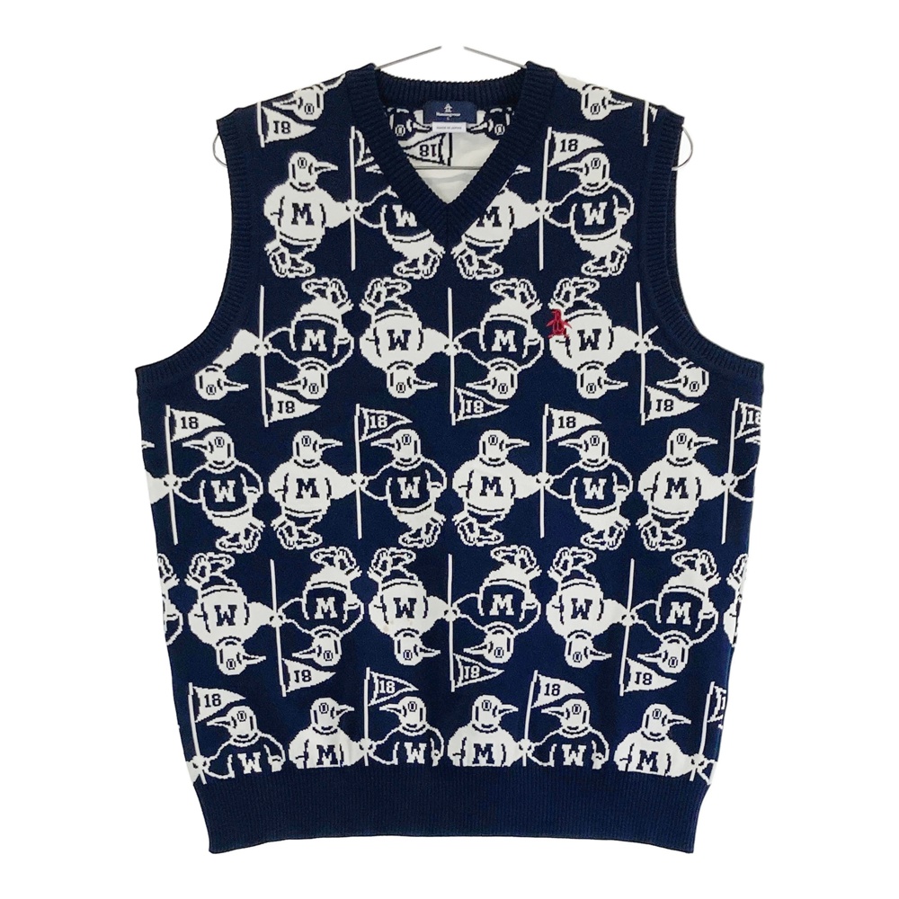 MUNSING WEAR マンシングウェア ニットベスト 総柄 ネイビー系 L ゴルフウェア メンズ