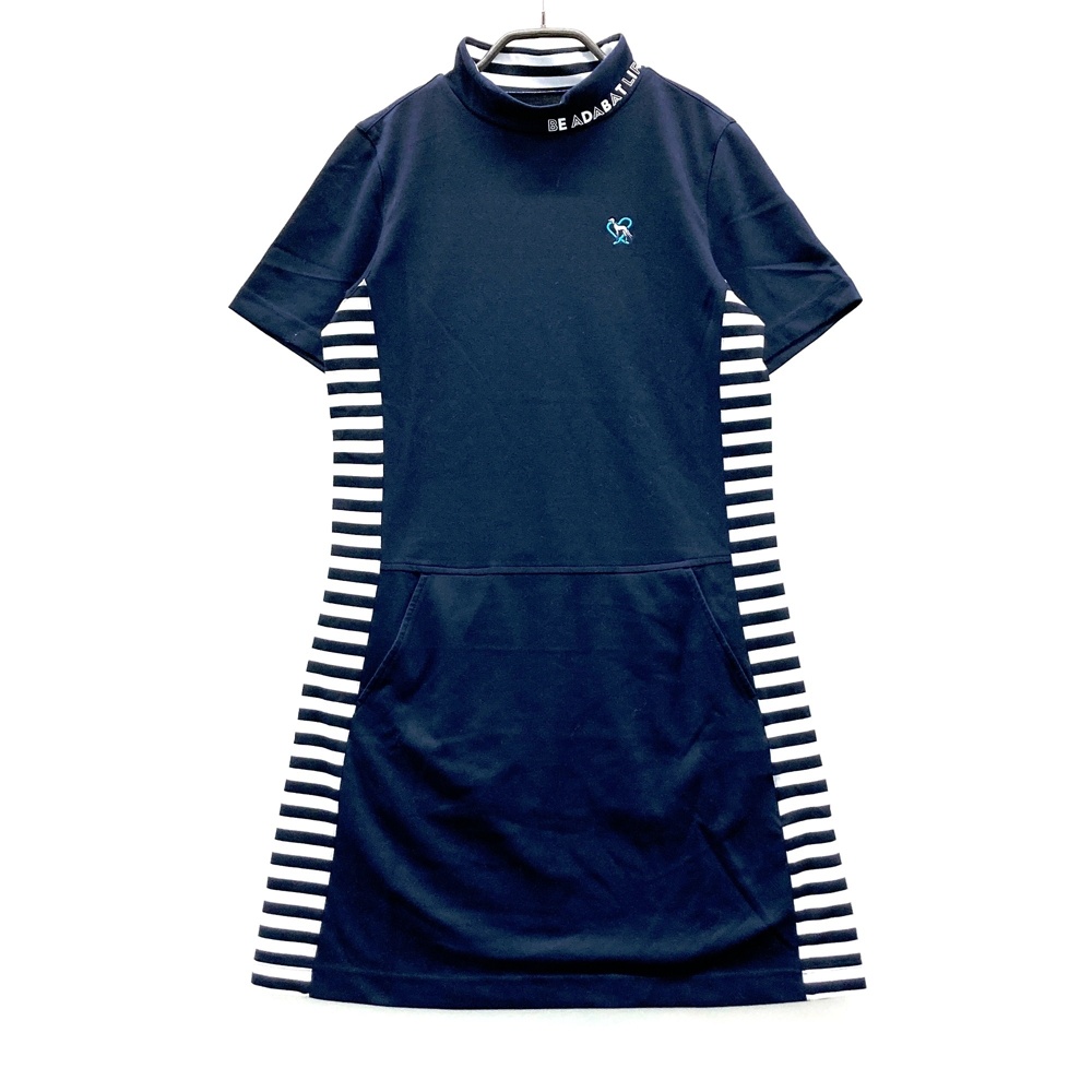ADABAT アダバット ハイネック 半袖ワンピース ボーダー柄 ネイビー系 36 ゴルフウェア レディース