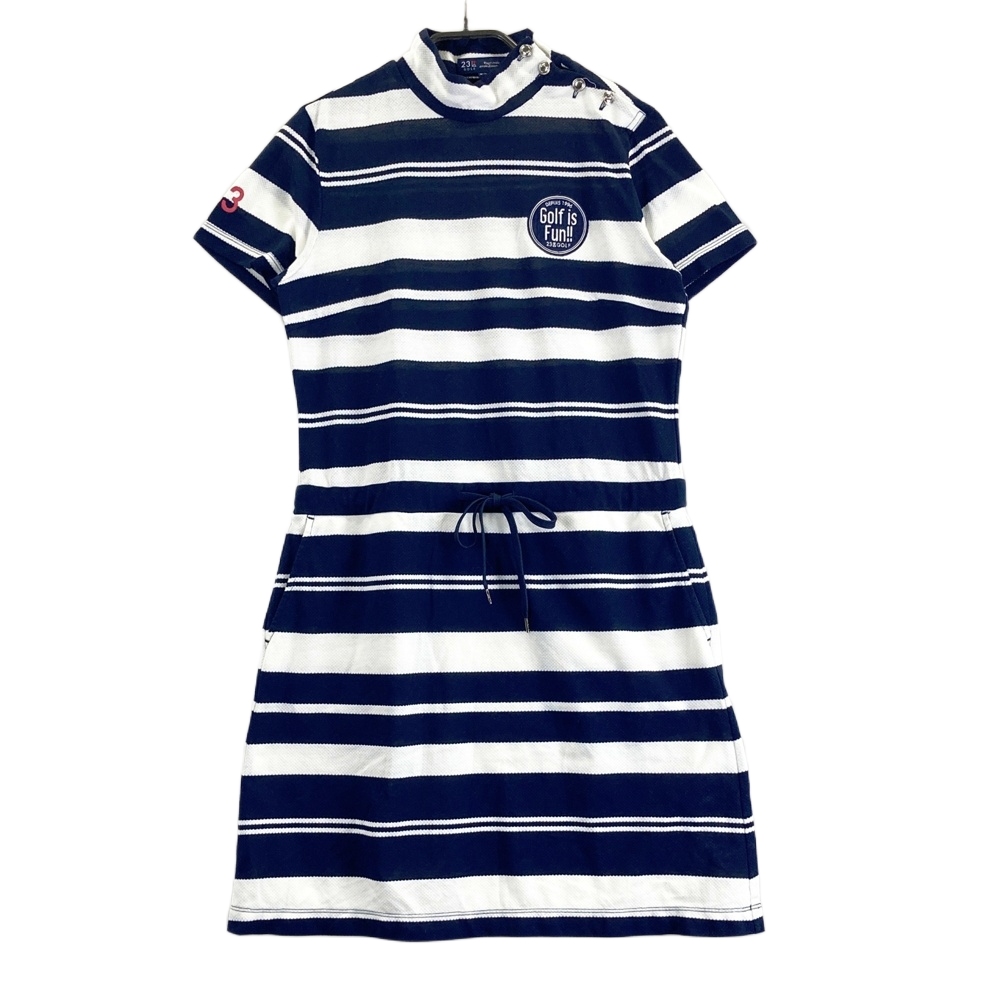 23区GOLF ニジュウサンクゴルフ 半袖ワンピース ボーダー柄 ネイビー系 M-L ゴルフウェア レディース