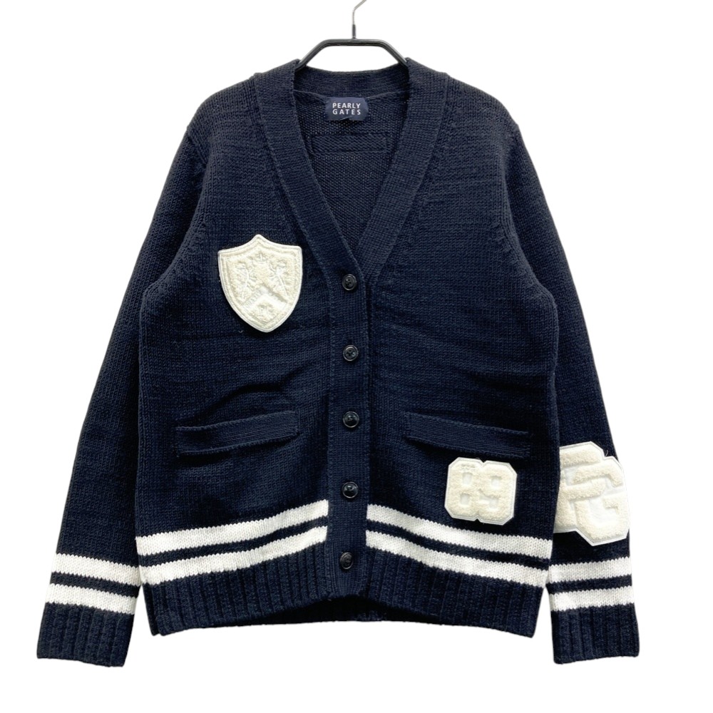 PEARLY GATES パーリーゲイツ ウール ニットカーディガン ワッペン ネイビー系 0 ゴルフウェア レディース