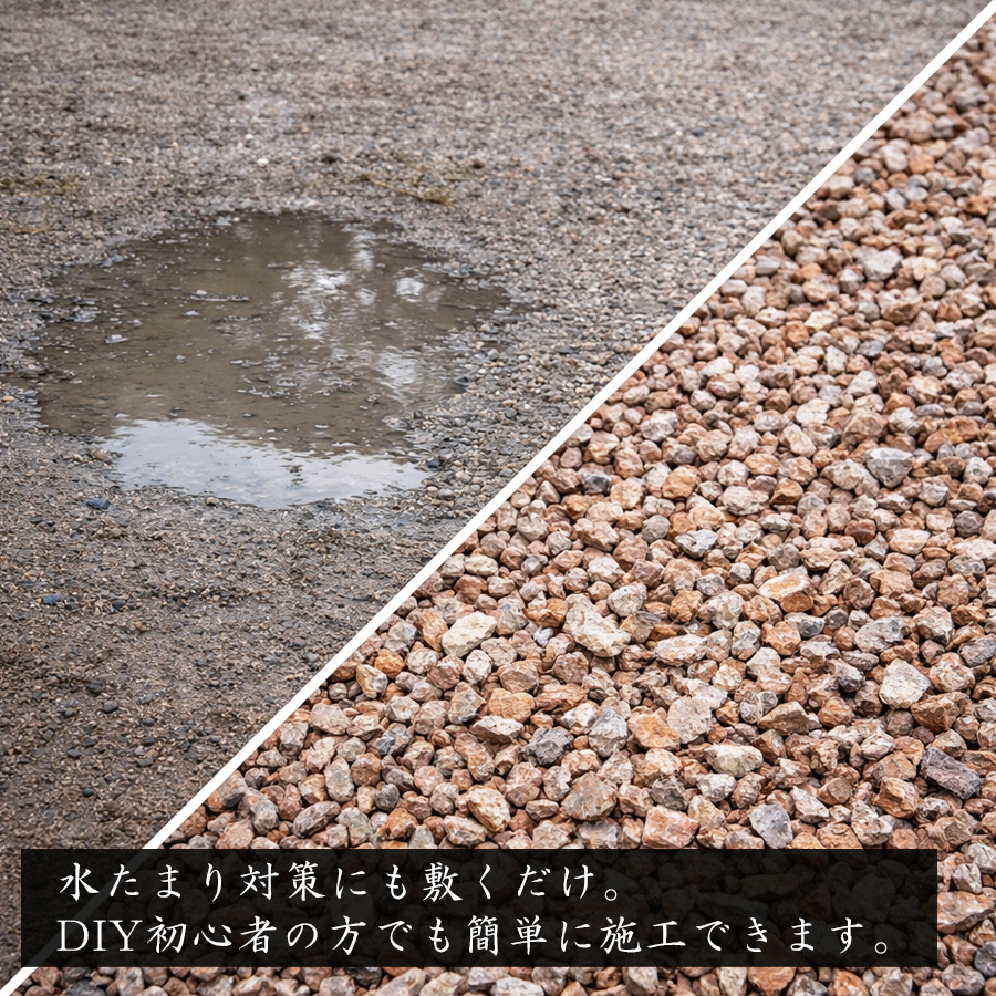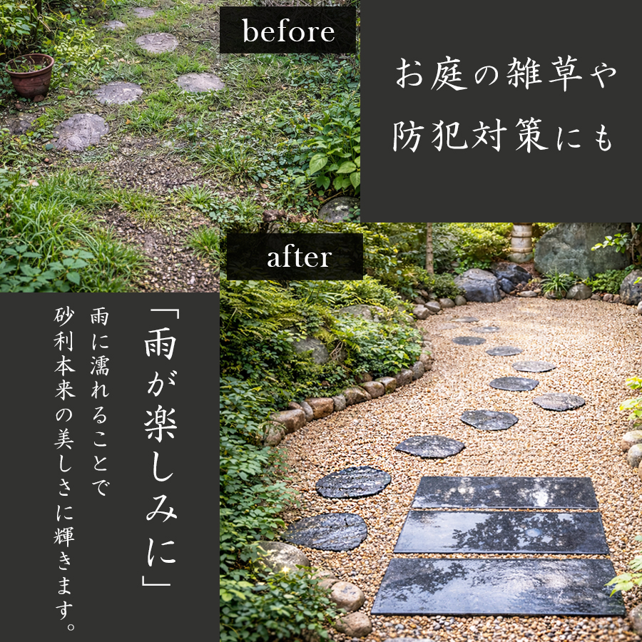敷き終わったら水をおまき下さい。砂利本来の美しさに輝きます。