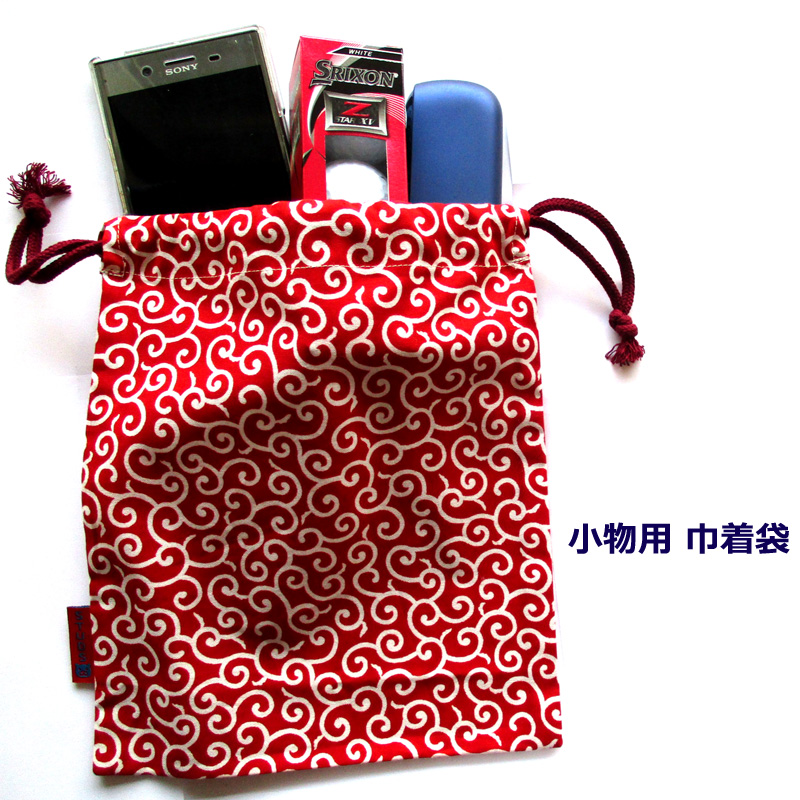 小物巾着袋 唐草 アカ 和柄 巾着小物BAG