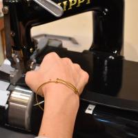 細くも太くも無い1.7mm線形と止め方のデザインが可愛いく真鍮生地そのままの風合いが大人な雰囲気を装ってくれる真鍮ブレスレット。