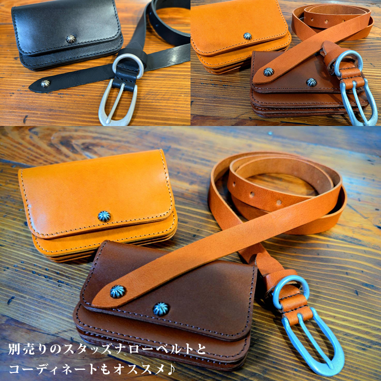 別売りのスタッズナローベルトと組み合わせれば、統一感あるレザーコーデも楽しめます