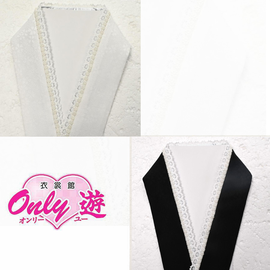 81NB40056【新作】重ね衿/プチパール重ね衿/桜柄/裏銀/重衿/振袖用/重ね襟/ホワイト/ブラック