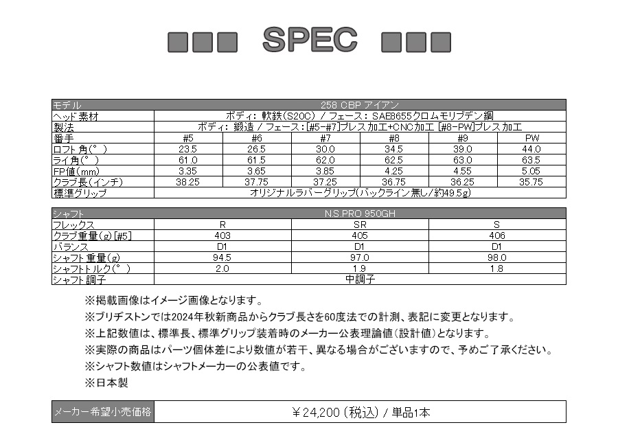 ブリヂストンゴルフ 2025 258 CBP [シービーピー] アイアン(NS PRO 950GH)単品