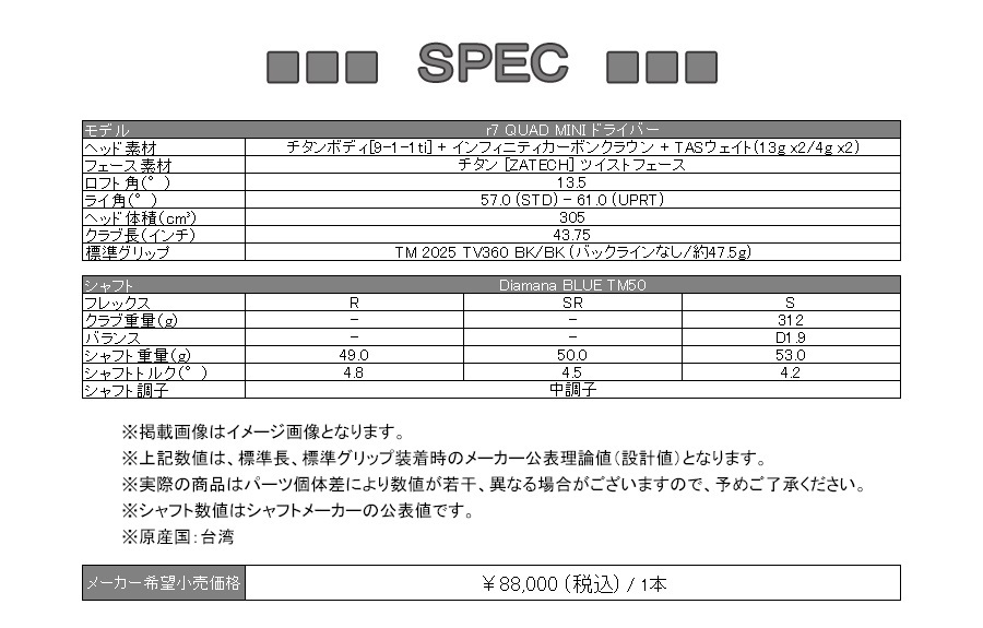 【日本正規品】【新品】【保証書付き】【TaylorMade】【r7quad Mini / r7クアッドミニ】【ドライバー】【ディアマナ オリジナル】【レフティ】【左利き用】【カスタム対応】