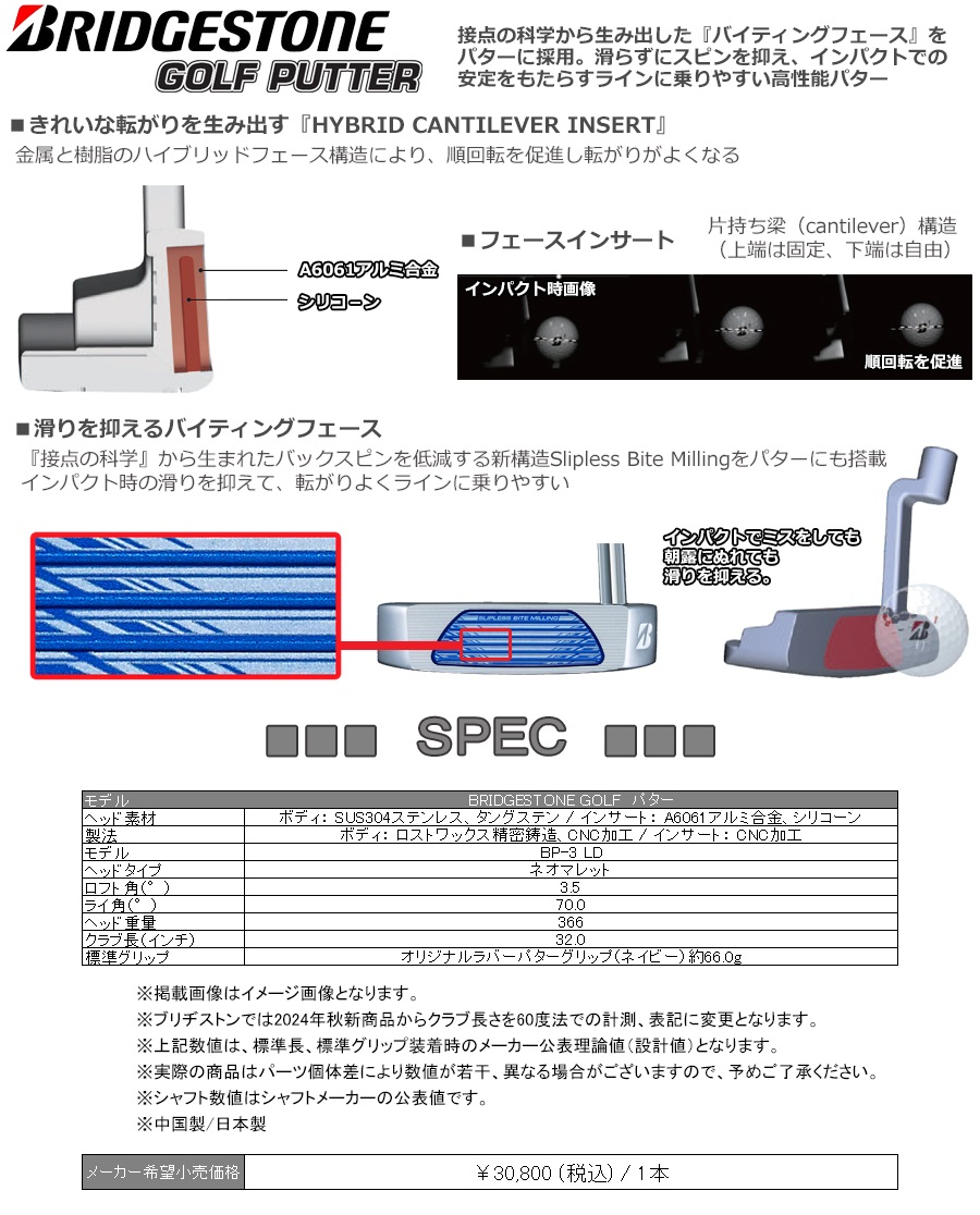 ブリヂストンゴルフ 2024 BRIDGESTONE GOLF [BP-3 LD] パター(オリジナルスチール)(女性)