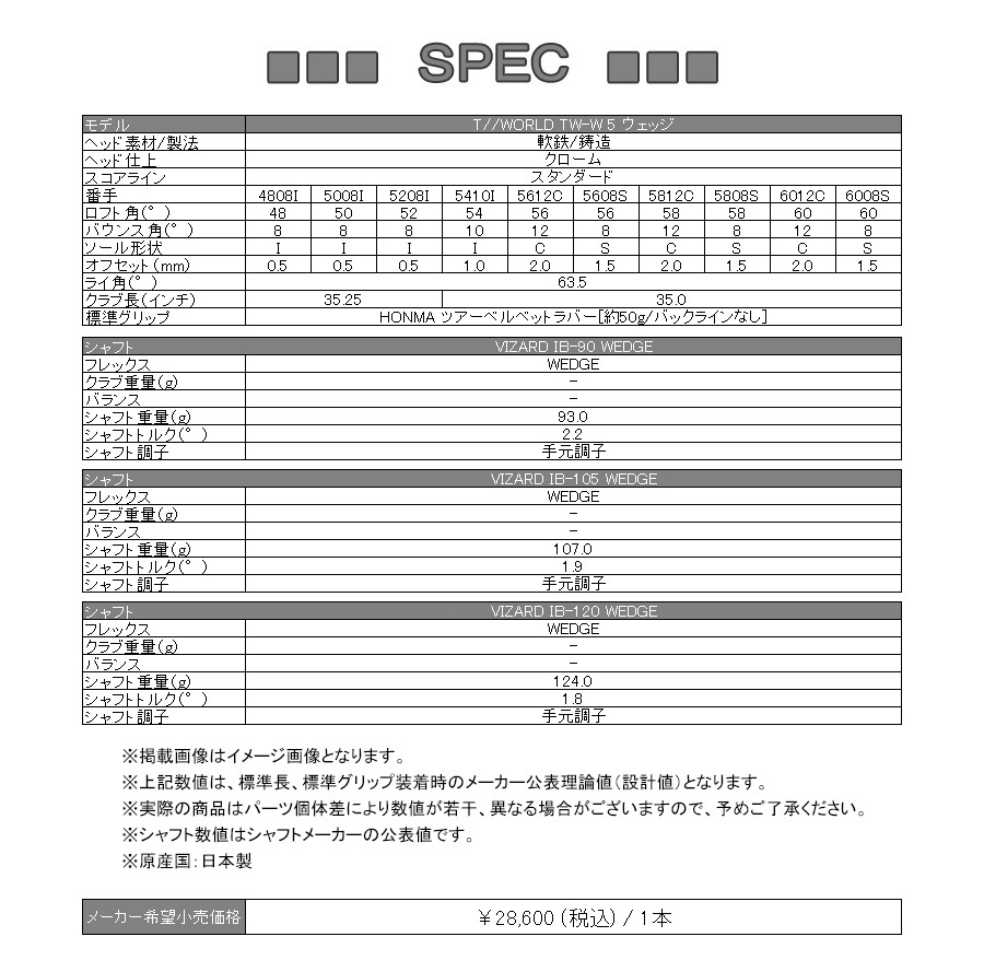 本間ゴルフ 2024 T//WORLD TW-W 5 [クロム] [ツアーワールド] ウェッジ(VIZARD IB-W90/105/120)