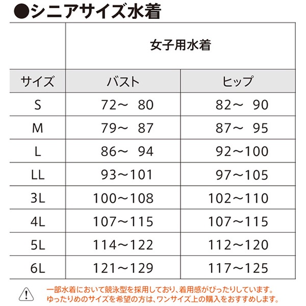 ※一部水着において競泳型を採用しており、着用感がぴったりしています。ゆったり目のサイズを希望の方は、ワンサイズ上をおすすめします。