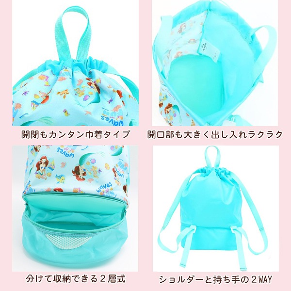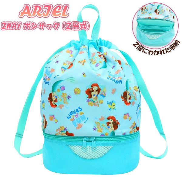 アリエル ディズニー プリンセス 2WAY ボンサック ナップサック スイム バッグ スイミング プール ビーチ 海水浴 水泳 園児 小学生