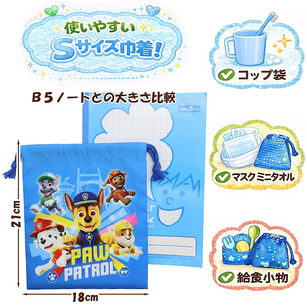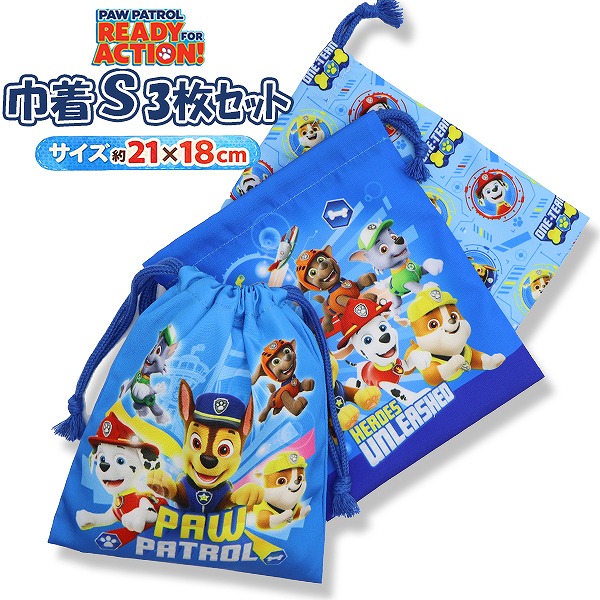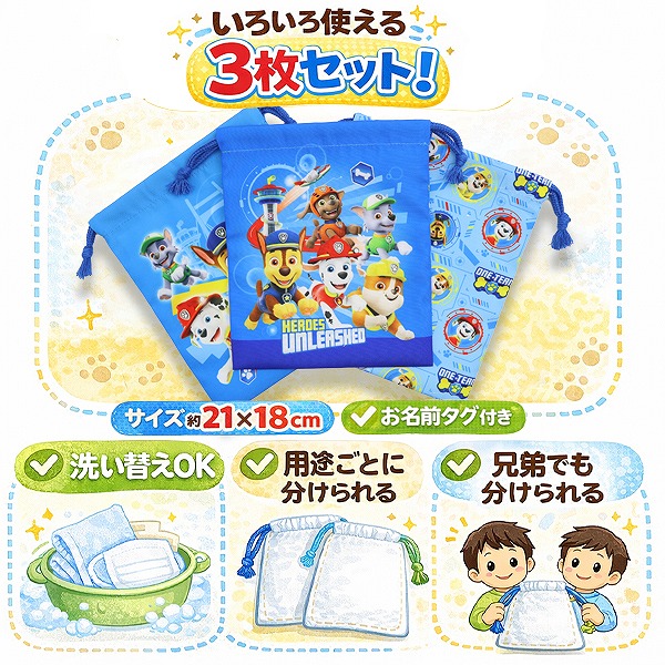 パウパトロール 巾着 3枚 セット 男の子 コップ 入れ 歯ブラシ マスク ポーチ きんちゃく 入園 入学 新学期 登園 通園 通学