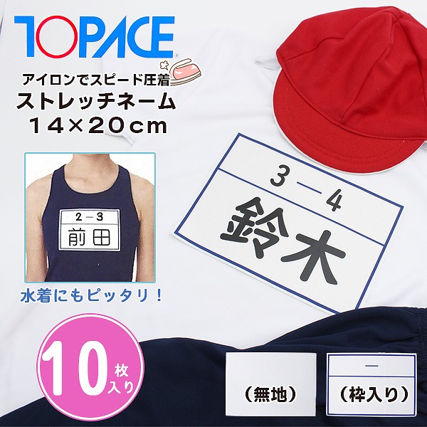 ワンタッチ ゼッケン ストレッチ ネーム 14 × 20 cm 10枚 名札 アイロン 名前 シール 体操服 スクール 水着 水泳 体育