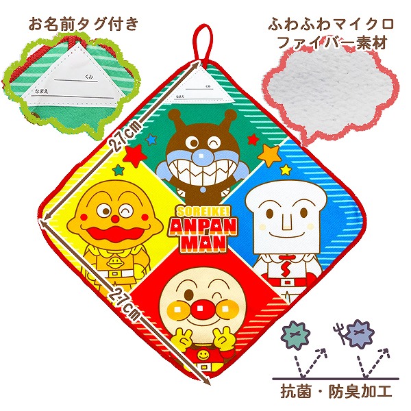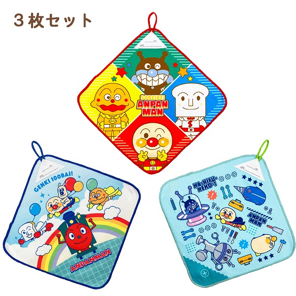 アンパンマン バイキンマン ループ タオル 3枚セット ネームタグ付き 抗菌 防臭 キャラクター 保育園 幼稚園 男の子 ハンカチ ハンドタオル メール便送料無料