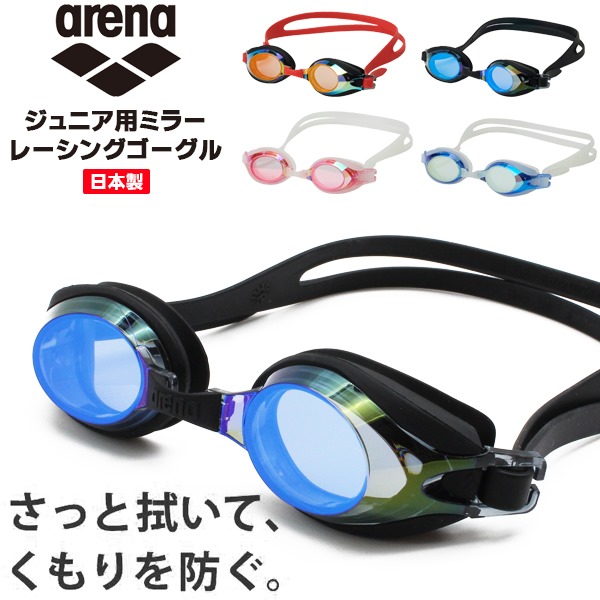 arena アリーナ ジュニア用 ミラー レーシング スイミング ゴーグル 子供用 曇り止め 水中メガネ 水泳
