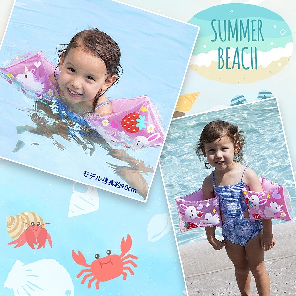 ●商品説明:アームリングはお子様の両腕の付け根に装着することで肩から上、つまり頭が沈まないようにする為の浮具です。