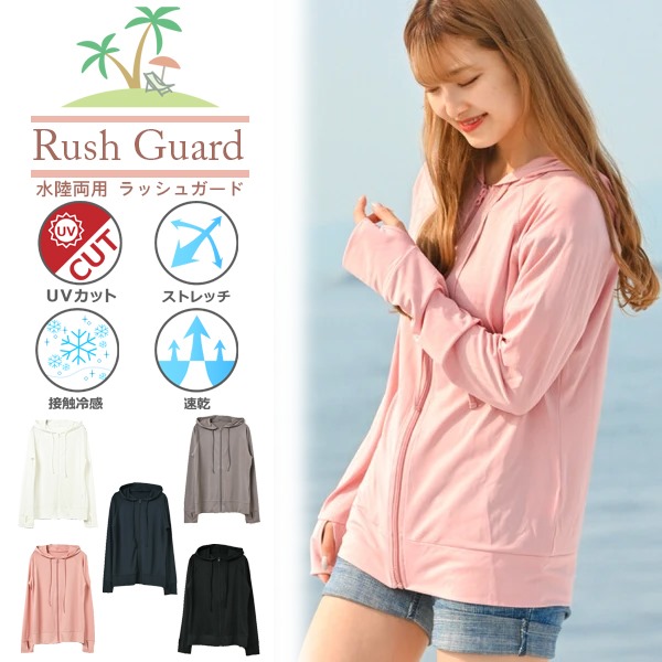 ラッシュ ガード 水陸両用 無地 紫外線 UPF50+ 接触冷感 レディース 女性 人気 新作 パーカー ジップ UVカット 速乾 軽量