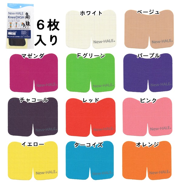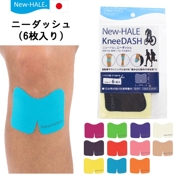 ニューハレ New-Hale テーピング テープ スポーツケア ニーダッシュ 6枚入り ヒザ 膝 捻挫 予防 横ブレ サポーターハサミ不要 メール便送料無料