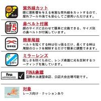 紫外線カット、鼻ベルト5サイズ入り、Fina承認モデル、ミラーレンズ、安心の日本製。