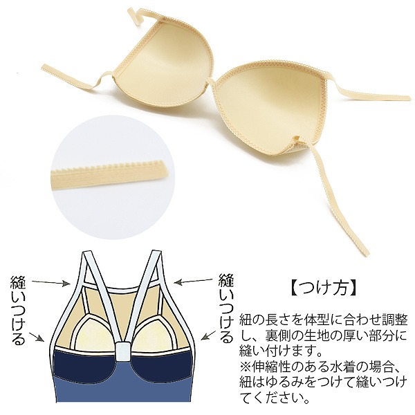 ●商品説明:水着にパッドの紐の先端を縫い付けて取り付けるパッドです。