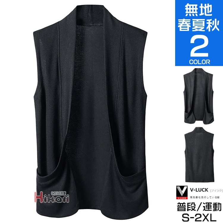 羽織 カーディガン メンズ 無地 ノースリーブ はおり シャツ ポケット付き 薄手 夏用 冷房対策