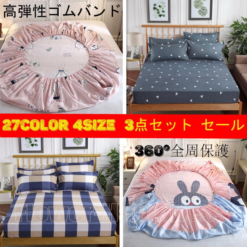 ボックスシーツ シングル?セミダブル ベッドシーツ マットレスカバー 敷ふとん 全周ゴム付き 肌触りの良い 丸洗い 通気性 着脱簡単セールセール3点セット
