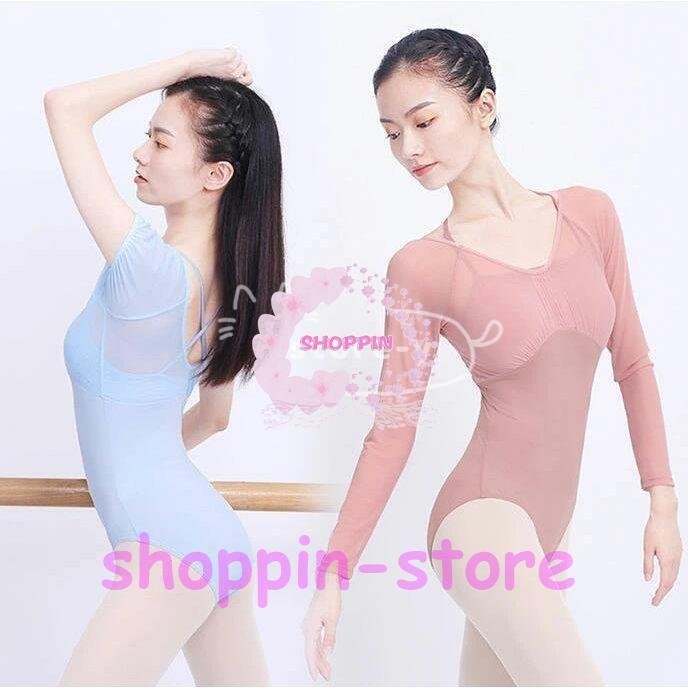 バレエ レオタード 大人 ジュニア チュールネット?レイヤーレオタード 背中 美シルエット スカートなし 胸パッドポケット付き 半袖 長袖 新体操