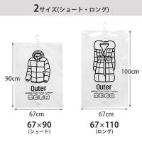 吊り下げ収納が可能なハンガー圧縮袋です。ダウンジャケットや冬用のコートなど、かさばる衣類の収納に大活躍。大切な衣類の対策にもオススメの衣類圧縮袋です。
