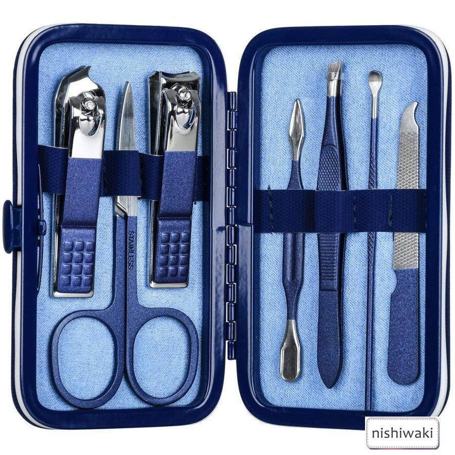 ネイルクリッパーセット、フディケアセット、ビューティーマッサージスティック7 in 1プロフェッショナルビューティー&パーマ、ブルー、ビッグトパーズギフト