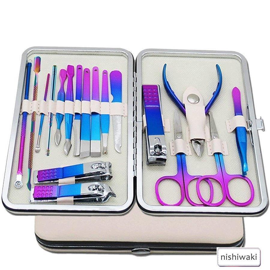 ネイルセットネイルクリッパーセット18PCSステンレス鋼のつま先ネイルクリッパーセット、男性と女性のプロの指ネイルツールセットカラフル