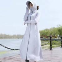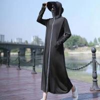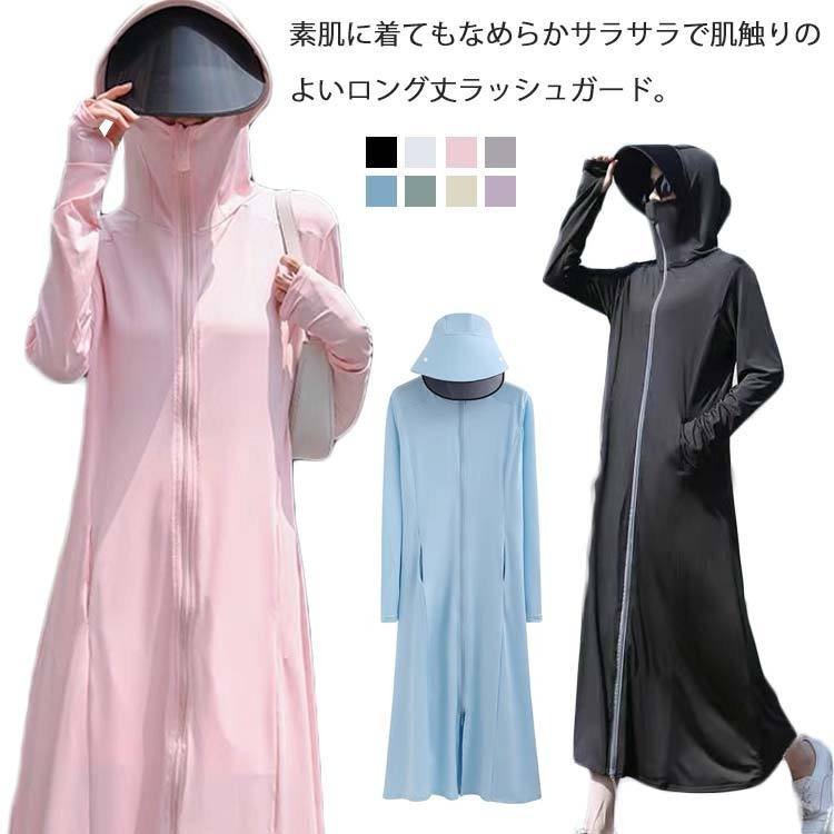UVカット パーカー ロング丈 涼感素材 ラッシュガード ワンピース フード付 つば広 サンバイザー 紫外線対策 ダブルファスナー 長袖 指穴 ジップ