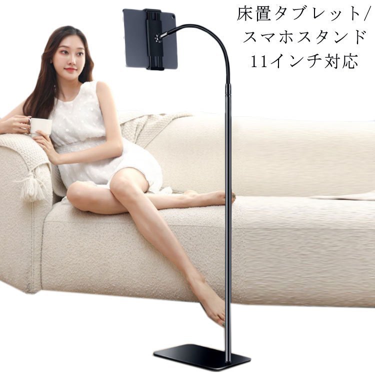 タブレットアームスタンド 床置き フレキシブル くねくね ホルダー 自立式 高さ調整 角度調整 11インチまで 金属 iPad スマホ