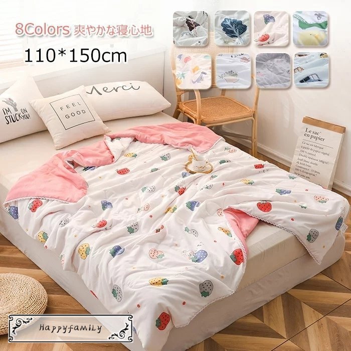 夏ふとん 肌掛け布団 子供用 夏布団 洗濯機OK 110*150cm 可愛い柄 肌触りいい 軽量 洗いざらし 冷房対策 通気性いい 夏用 肌布団 ブラ