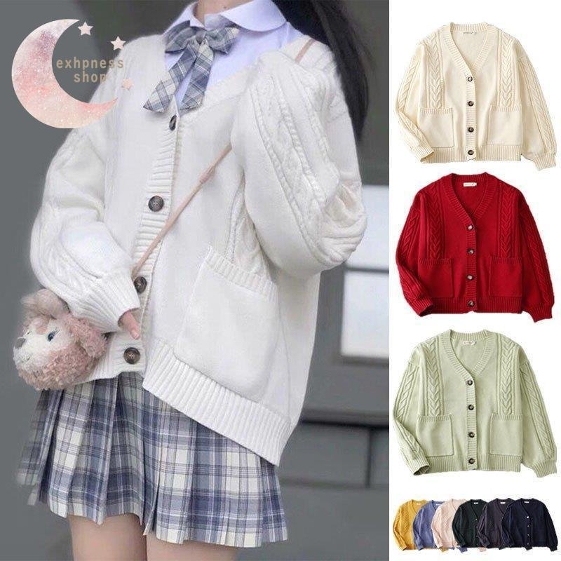 スクール ニットカーディガン 綿100% Vネック 無地 正統派 トップス セーター 長袖 オールシーズン JK制服 OL 高校 通学通勤 学生 男女兼用
