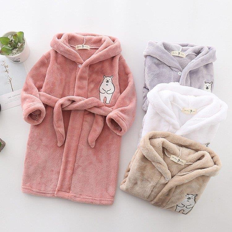 キッズ バスローブ パジャマ ナイトローブ 女の子 男の子 男女兼用 可愛い 裏起毛 もこもこ 帽付 防寒 寝巻き 部屋着 ルームウエア こども服 子供用 4色