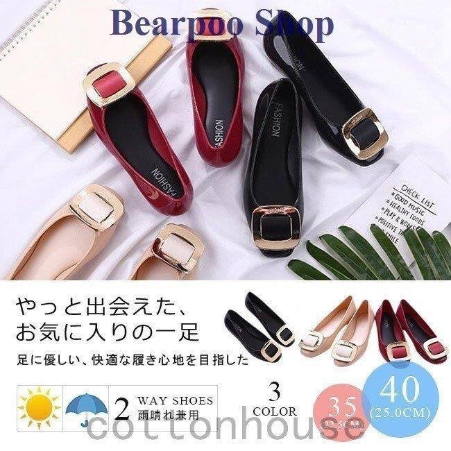 レインシューズパンプスレディース防水防滑レインローファー長靴靴雨靴梅雨ローヒールぺたんこフラット婦人靴全3色大きいサイズ
