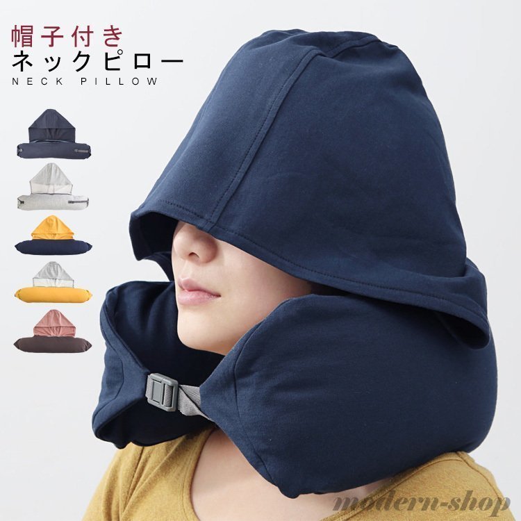 ネックピロー U型 フード付き 首枕 低反発 旅行グッズ 便利グッズ 遮光フード トラベル 飛行機 新幹線 長距離移動 うつ伏せ枕 昼寝 オフィス 会社